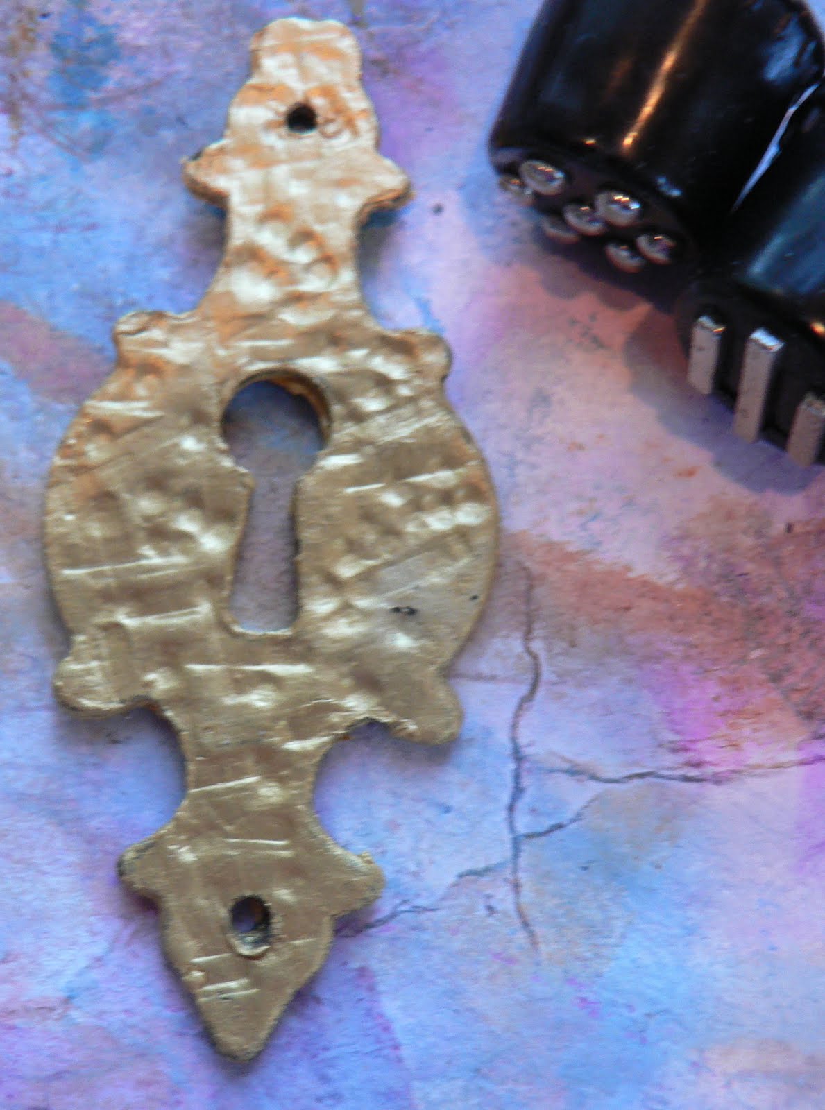 Hardware piece I made last week and added fibers, a stamped bronze charm and a large key: